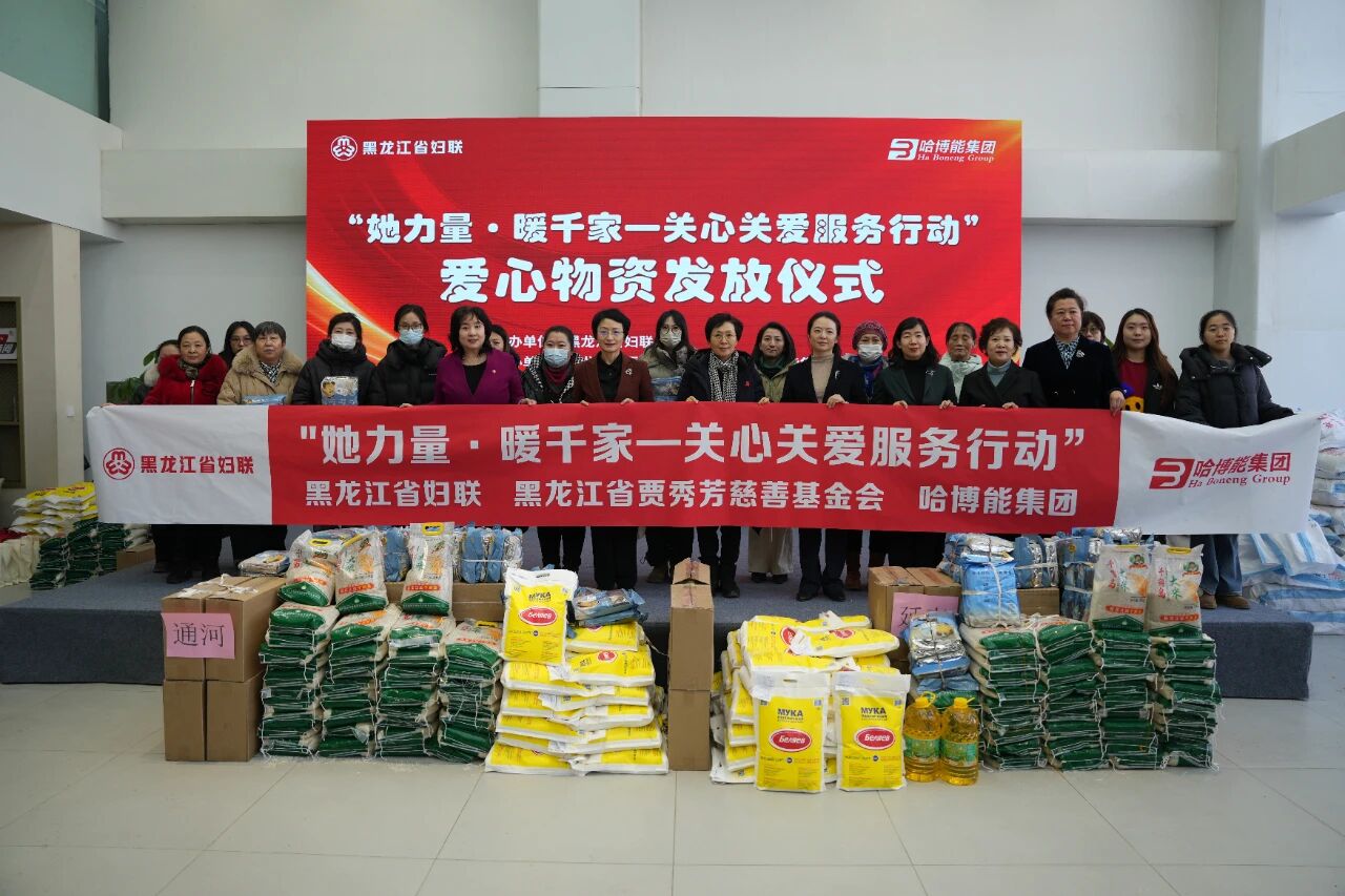 202026.01“她力量·暖千家”爱心物资温暖启程 黑龙江省2700户困难妇女儿童家庭将收到新春关怀为全面落实中央和省委关于做好元旦春节期间关心关爱困难群众生活的部署要求,1月19日,黑龙江省妇联携手黑龙江省贾秀芳慈善基金会、哈尔滨博能集团共同举行“她力量·暖千家——关心关爱服务行动”爱心物资发放仪式。省妇联党组书记、主席王平,省妇联兼职副主席、黑